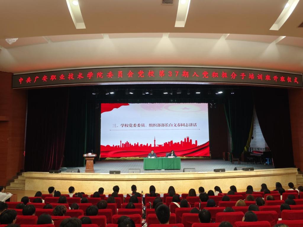 10月27日,中共广安职业技术学院委员会党校第37期入党积极分子培训班开班仪式在杏坛举行。开班仪式在庄严的国歌声中启幕,学员代表马樱月作了表态发言,学校党委委员、组织部部长白文春出席并讲话。
