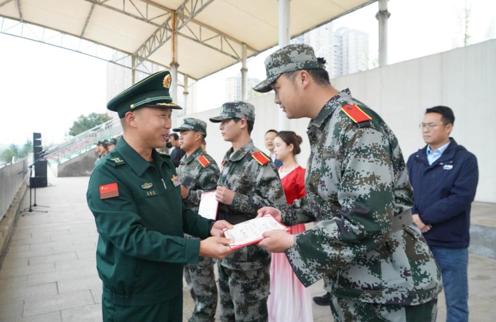 党委委员、副校长冉嘉洛,党委委员、副校长袁驰分别宣读了《广安职业技术学院关于表扬2025级学生军训先进集体和个人的决定》。参会领导现场向优秀学员和优秀教官代表颁发荣誉证书,优秀军训学生代表、教官代表分别作了交流发言。