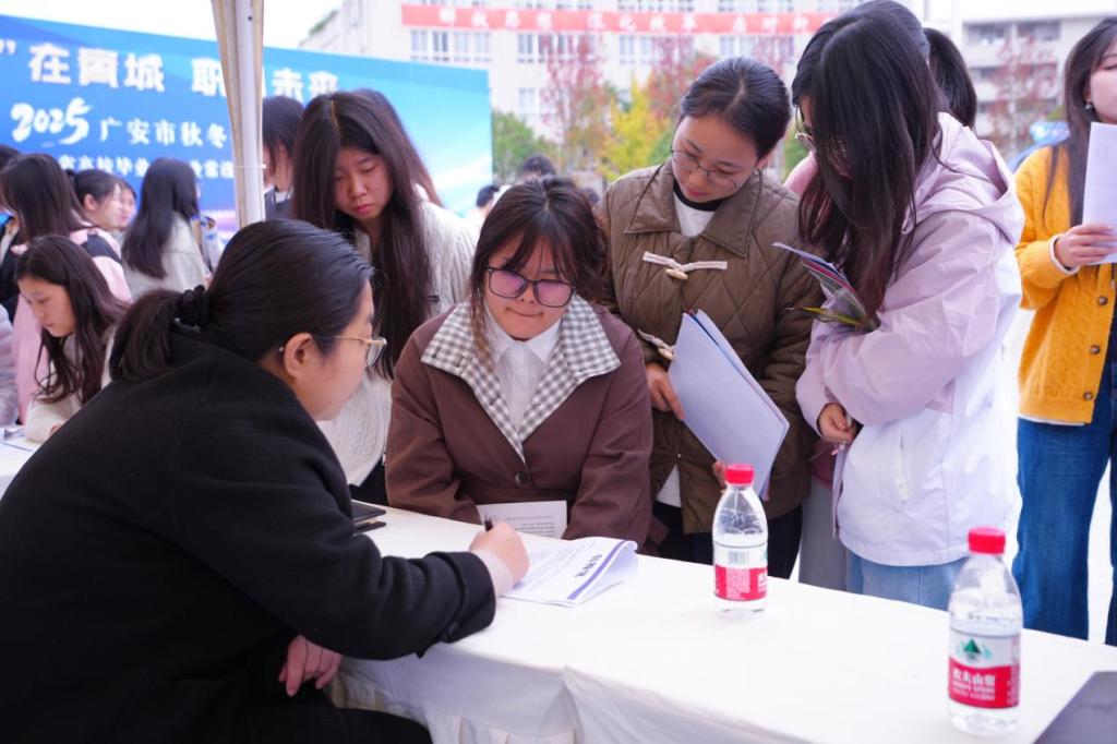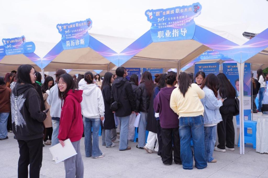 11月11日,由广安市人力资源和社会保障局、四川省高校学生信息咨询与就业指导中心、广安职业技术学院联合主办的“就”在賨城·职引未来—广安市2025年秋冬招聘季暨“蜀汇菁英”四川省高校毕业生就业常设市场川东片区专场招聘会在广安职业技术学院滨江校区成功举行。此次双选会共吸引244家用人单位参加,其中东西部协作招聘单位75家、成渝地区招聘单位91家、广安市内招聘单位78家,现场提供就业岗位10586个。