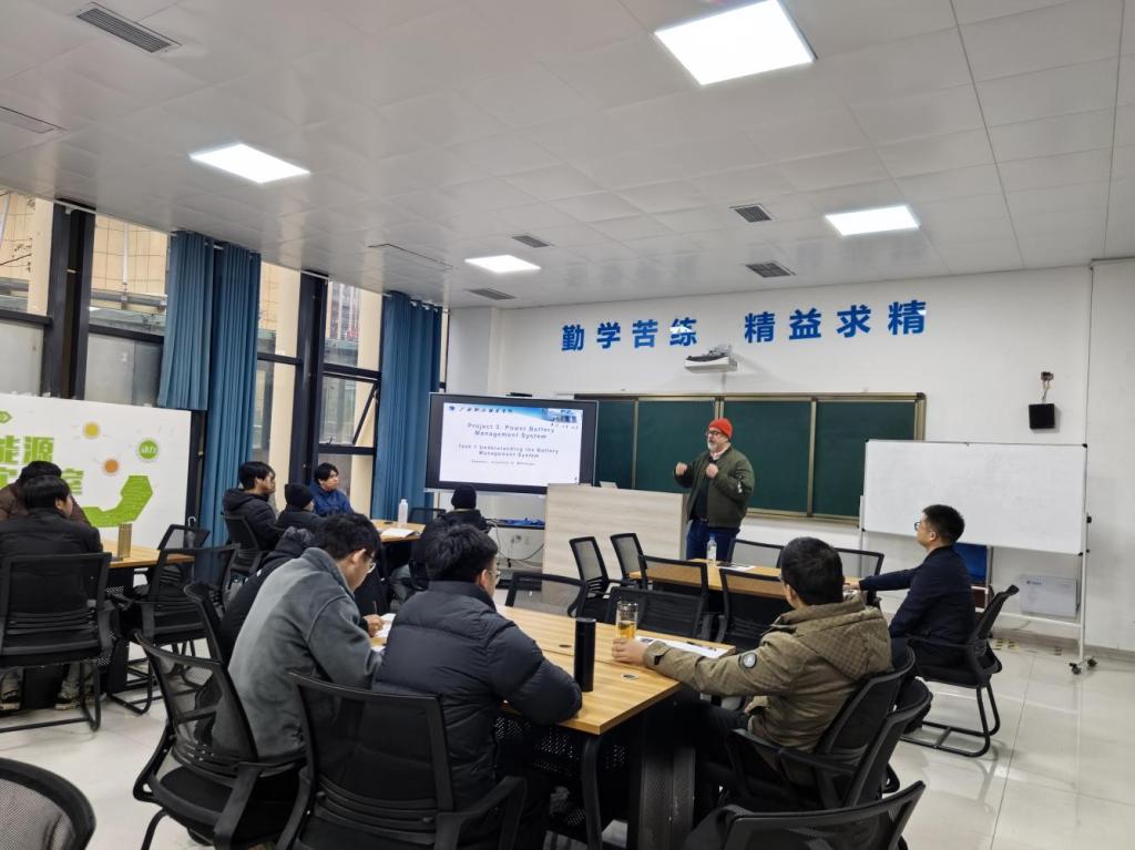 交流期间,乔纳森·马修斯老师深入课堂,与新能源汽车专业教师陈益庆为学生共同呈现了生动精彩的示范课程。课堂上,他以沉浸式的教学方式、幽默风趣的语言表达,打破了传统教学模式的束缚。