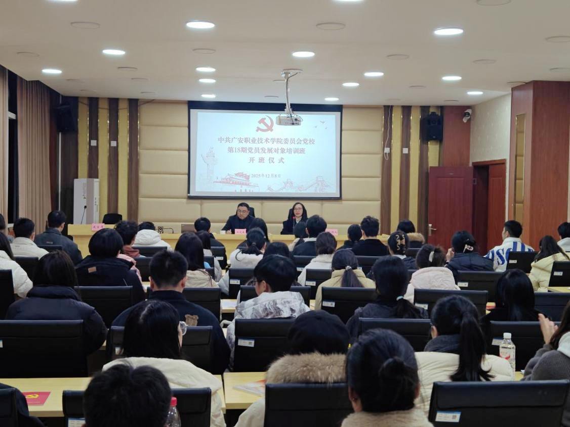 12月8日,中共广安职业技术学院委员会党校第18期党员发展对象培训班开班仪式在九思楼209举行。学校党委委员、组织部部长白文春同志出席并讲话,学员代表廖翰轩作表态发言,组织部副部长兰梅主持仪式,71名党员发展对象参加培训。