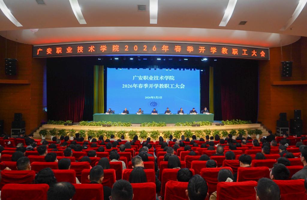学校党委书记王冬霞主持会议并作动员讲话,校领导班子成员、全体教职工齐聚一堂,以昂扬姿态开启新征程。王冬霞在讲话中指出,2026年春季开学教职工大会的召开,一是“收心归位”,帮助大家调整好心态和工作节奏,以奋进昂扬姿态把握机遇、迎接挑战。二是“定向启程”,锚定学校发展目标,明确新一年工作目标和任务,细化工作举措,确保各项工作开好局、起好步!王冬霞指出,过去一年,全校上下锚定“双高计划”建设和职教本科创建目标,务实创新、踔厉奋发,各项工作取得新进展。在党建思政方面,深化党建“四大工程”,成功创建“全国巾帼文明岗”“全国五四红旗团委”,获评省级民族团结进步模范集体,立项省级名辅导员工作室、课程思政标杆院系,风清气正的政治生态持续巩固;在内涵建设方面,“双高”建设成果丰硕,师生在省级以上技能竞赛中获奖160余项,其中世界职业院校技能大赛斩获1金1银5铜,实现历史性突破,同时引进领军人才、博士等高层次人才10人,师资队伍结构不断优化;在服务地方方面,“广职融圈”行动持续深化,与重庆7所高校建立合作,成功创建省级市域产教联合体、省级工匠学院,立项省级及以上科研项目41项,实现国家社科基金项目零的突破;在办学条件方面,开发建设33项信息化平台,新建实验实训室9个,完成学生公寓改造等10余个项目,滨江校区补短提质项目顺利启动。王冬霞指出,站在新起点,必须跳出广职看广职,站在全省乃至全国高职院校的坐标中审视自己,切实增强危机感和紧迫感,全体教职工要认清形势、正视差距,以清醒认知推动实干奋进。她就做好2026年的工作提出要求。一是锚定目标、明确方向,在“定坐标”中凝聚奋进力量。“十五五”末,全面达标职教本科创建条件;2026年确保省级“双高”终期验收通过、力争进入B档,推动办学条件达标工程硬落实,为新一轮国“双高”申报积蓄力量,要求各二级部门、二级学院层层分解目标、细化落实举措。二是问题导向、攻坚破局,在“解难题”中筑牢发展根基。聚焦医学院、前锋校区、校企合作等重点难题,逐项攻坚、系统破解,同时坚决守住安全稳定底线,为学校发展营造良好环境。三是结果导向、实干担当,在“求实效”中检验工作成效。坚持“以实干论英雄、凭实绩用干部”,明确二级学院、二级部门、教师团队、干部队伍的检验标准,真正让有为者有位、庸者下、劣者汰。王冬霞强调,事业成败,关键在人,要锻造一支敢打硬仗的广职铁军。要树牢荣辱心,做学校形象的塑造者、声誉的维护者,凝聚同心同向的奋斗合力;要树牢责任心,层层压实责任、闭环落实任务,不推诿、不缺位;要树牢事业心,以强烈的使命担当和事业追求迎难而上、攻坚克难,以实干实绩推动学校高质量发展。