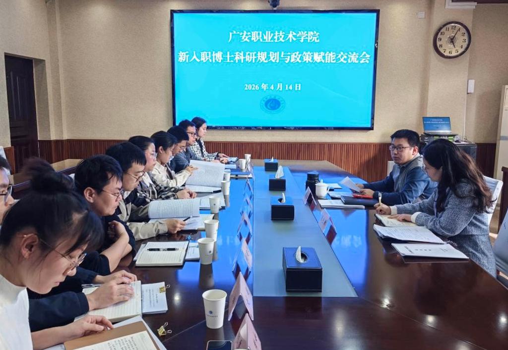 会上,科技与社会服务处负责人解读了学校的科研激励政策、科研项目申报程序、成果转化途径以及科研诚信的底线要求,传达了2026年广安市科技创新工作会议精神,并分享了自身的科研工作经历。