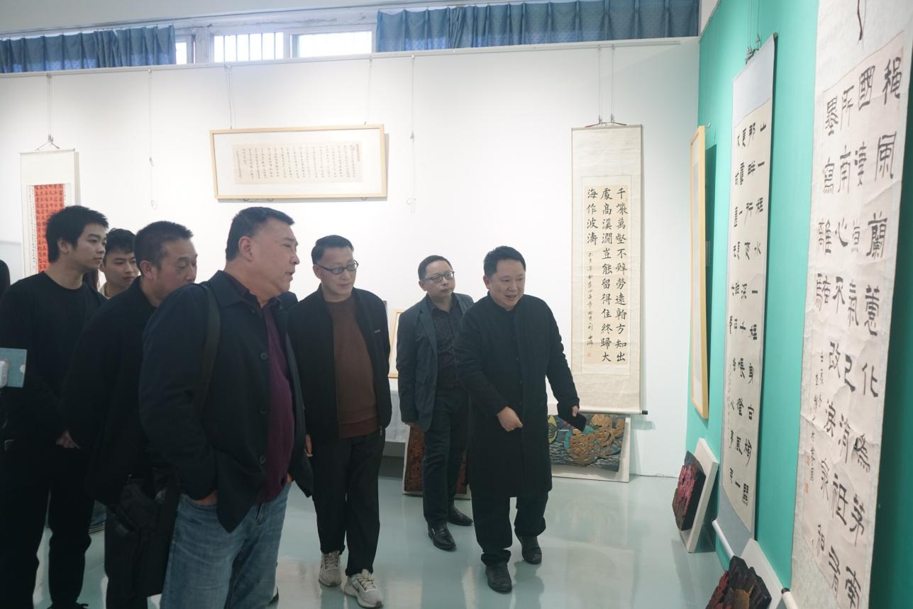 会后,全体与会人员移步至九思楼前合影留念,记录下这一珍贵时刻。随后,嘉宾与师生共同前往艺术学院展厅,参观“萌芽书法社历届社员书法展”。展览集中呈现了社团36年来的优秀创作成果,风格多样、底蕴深厚,充分展现了社员们在书法艺术道路上的探索与成长。