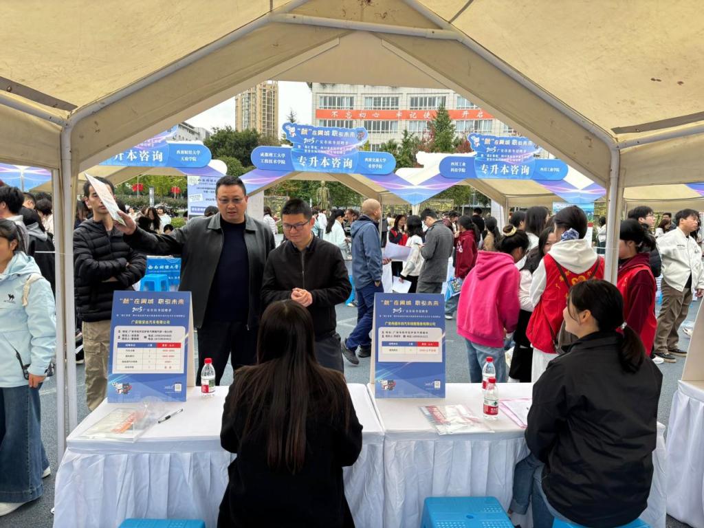 为切实做好2026届毕业生就业服务工作,搭建校企人才对接桥梁,2025年11月11日上午,川东片区专场招聘会在学校隆重举行。学院全体毕业生手持简历积极参会,学院党总支书记林晓军、院长王国明亲自带队赴招聘会现场与企业代表深入交流,为毕业生求职全程保驾护航。