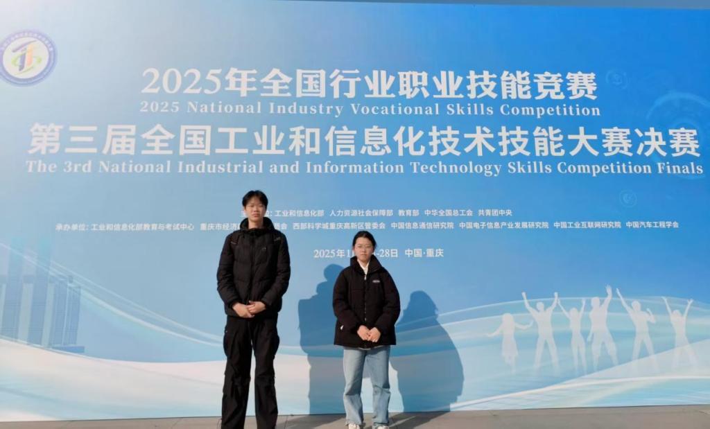 近日,2025年全国行业职业技能竞赛——第三届全国工业和信息化技术技能大赛决赛圆满落幕。本届大赛以“产才融合・技能报国”为主题,是我国工信领域规格最高、规模最大的国家级技能赛事,旨在全面检验技能人才培养成效,有力推动新型工业化和制造强国建设。我校电子与信息工程学院师生组队参赛,在激烈的角逐中表现卓越,由罗峥嵘老师与周华杰老师组成的职工组,以及由吴建教授指导、康熙伟和伍民阳两位同学组成的学生组,在“工业大数据”赛道上双双荣获三等奖。