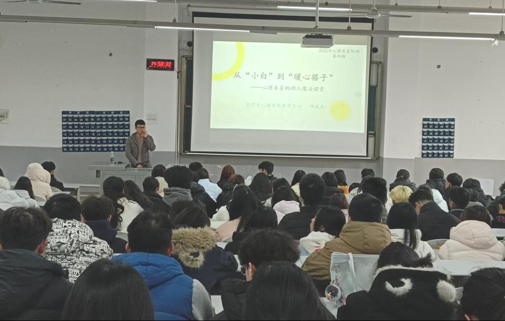 12月2日,学校第四期学生心理委员培训班在致用楼阶梯三教室顺利完成第三场专题培训,200余名2025级新生心理委员参与培训学习和结业考试。