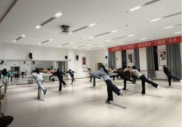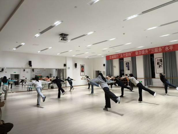 现场学习氛围浓厚,教职工们精神饱满,跟随动感节拍认真投入练习,既舒展了身心,也促进了交流,充分展现出积极向上的精神风貌。