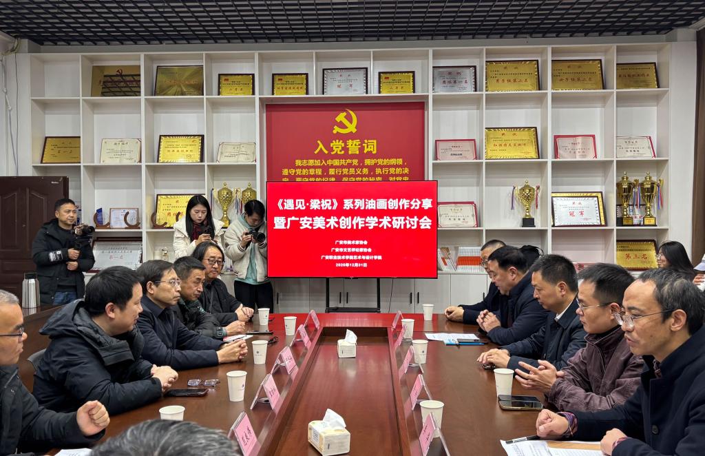 为践行中国评协“中国有品——评论在现场”主题活动要求,深化校地文艺协同创新,推动文艺评论与艺术教育深度融合,12月31日,由广安市文联、市总工会主办,我校艺术与设计学院与市美协、市评协联合承办的“古意新境——未风《遇见·梁祝》系列油画展暨广安市文艺创作研讨活动”顺利举行。学院师生全程深度参与活动组织、作品观展与学术研讨,在实践中拓宽艺术视野,在交流中锤炼专业素养,实现了教学与实践、传承与创新的双向赋能。