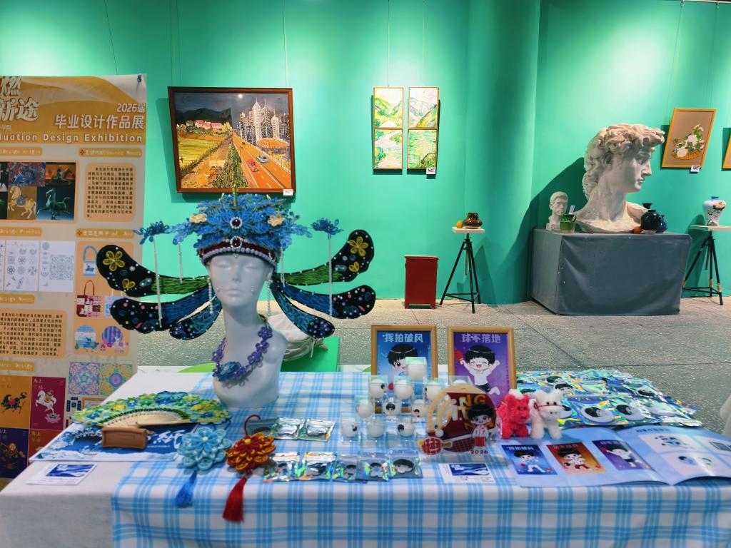 12月29日艺术与设计学院2026届毕业作品展在广安职业技术学院致用楼一楼正式拉开帷幕。经过数月辛苦创作与打磨,采用不同设计与表现手法完成作品153幅,其中有来自广告艺术设计专业的文创作品、动漫制作技术专业插画和视频制作、书画专业中国画、书法、烙画、蜡染作品、环境艺术设计专业室内设计、景观小品等形式丰富多彩。这是艺术与设计学院人才培养与教学成果的集中体现,在学校领导坚强领导下专业教学的一次升华。