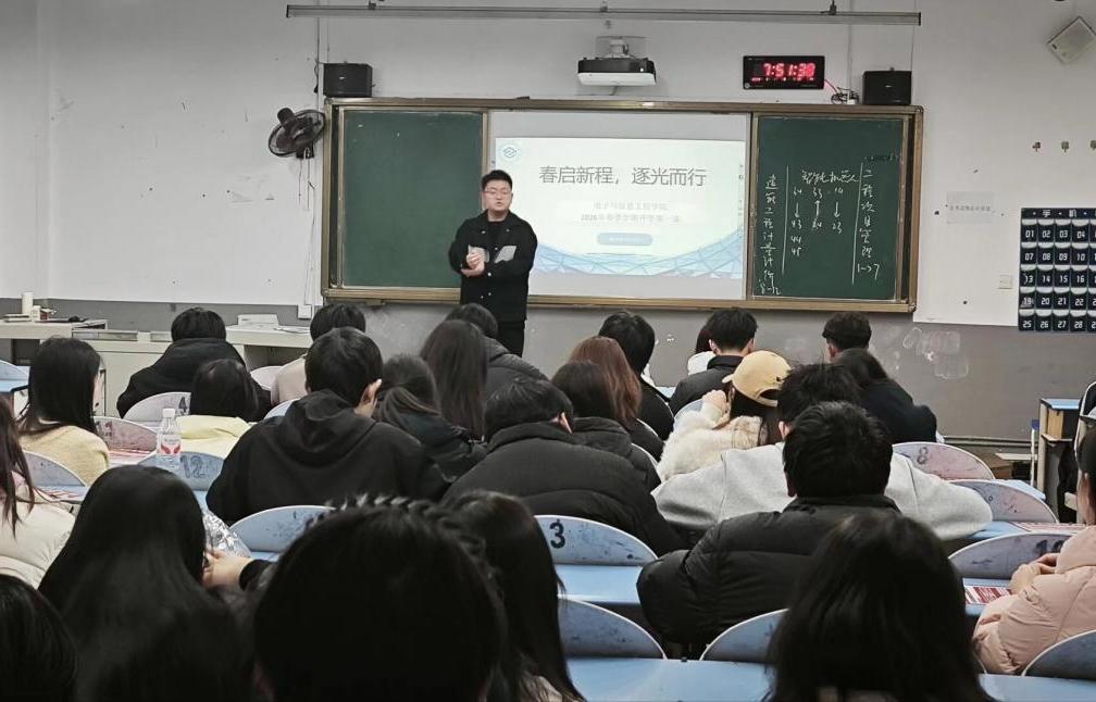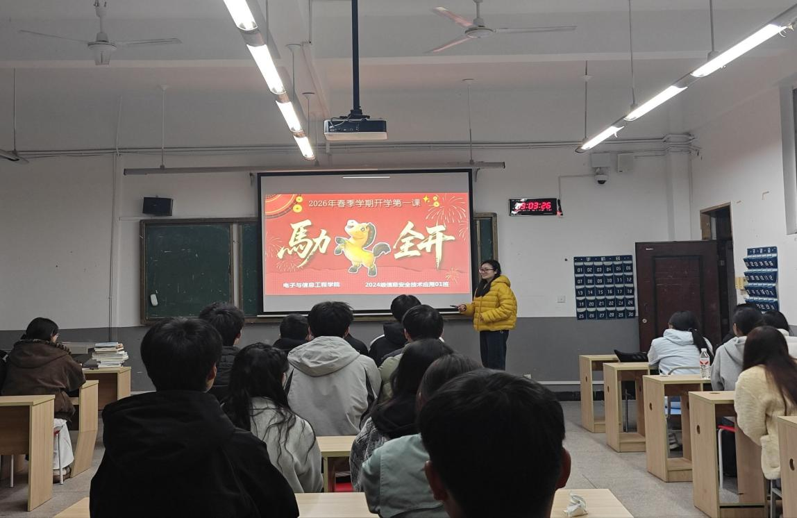 春风浩荡满目新,扬帆奋进正当时。为引导同学们迅速调整状态,以全新的精神面貌投入新学期的学习生活,电子与信息工程学院3月1日晚精心组织并开展了2026年春季学期“开学第一课”主题教育活动。本次活动覆盖学院全体在校生,旨在通过多维度的教育引导,为学子们新学期的成长与发展奠定坚实基础。
