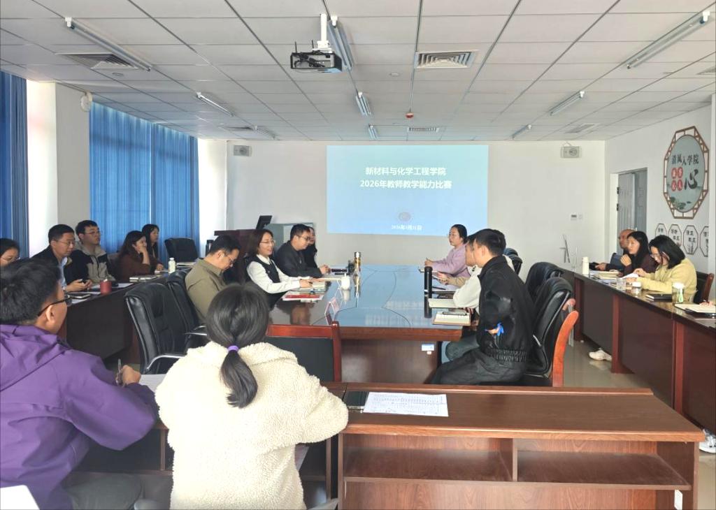 3月31日下午,新材料与化学工程学院2026年教师教学能力比赛在学院2001会议室顺利举行。学院全体教师参与活动,比赛特邀建工学院张淑琴教授、师范学院陈香帆老师担任评委。