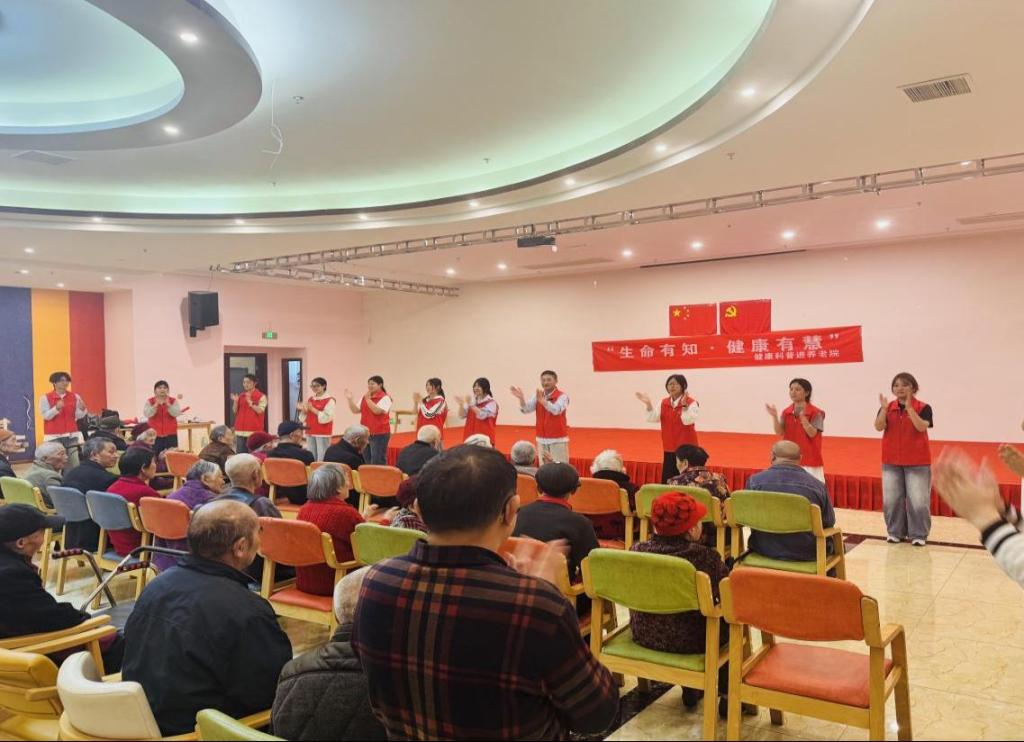 康乐互动暖人心,活动伊始,志愿者们精心组织了手指操、健康知识问答、唱红歌等康乐活动。轻松有趣的互动迅速拉近了志愿者与老人的距离,养老院内欢声笑语不断,为后续科普环节营造了温馨融洽的氛围。