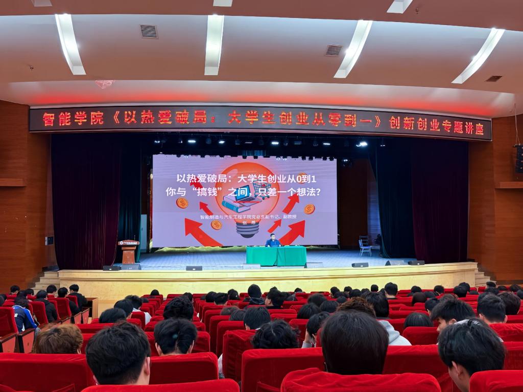 4月21日下午,为进一步引导学生树立创新思维、厚植创业理念、激发创新创业热情,智能制造与汽车工程学院于杏坛举办2026年创新创业专题讲座。本次讲座由学院党总支副书记张希老师主讲,学院2025级全体学生到场参与。