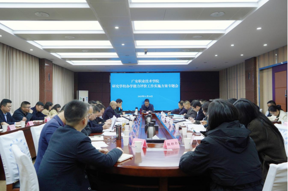 会上,参会校领导就评价工作实施方案提出了意见和建议,质量监控与评估处对《广安职业技术学院高等职业学校办学能力评价工作实施方案》作了解读和说明;相关职能部门进行交流发言。